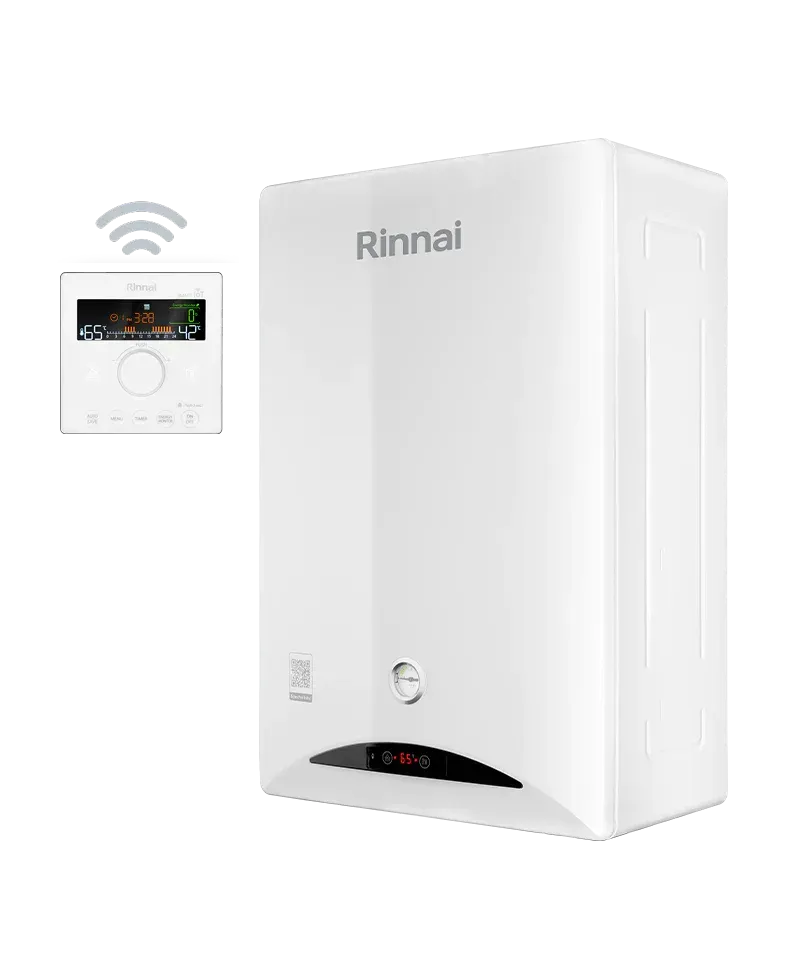 Completo di cronotermostato Wi-Fi di serie con APP "My Rinnai" dedicata per smartphone Android e iOS.